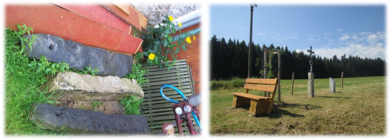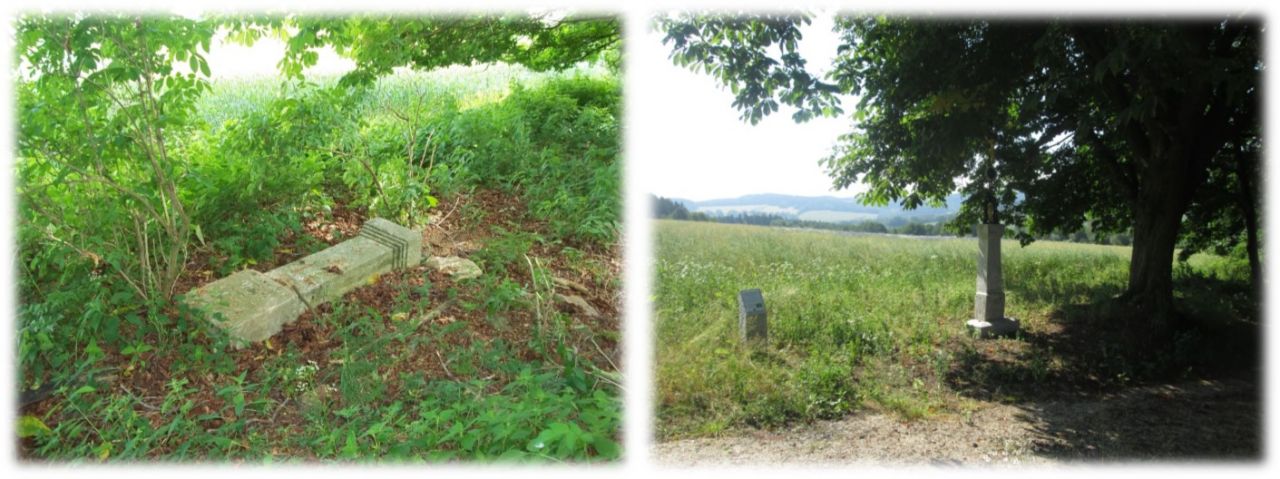 Mnichov – kříž za budovou školky I.: obnova kříže a zhotovení žulového sloupu pro osazení informační desky vč. instalace, zemní práce, lavička, informační tabulka