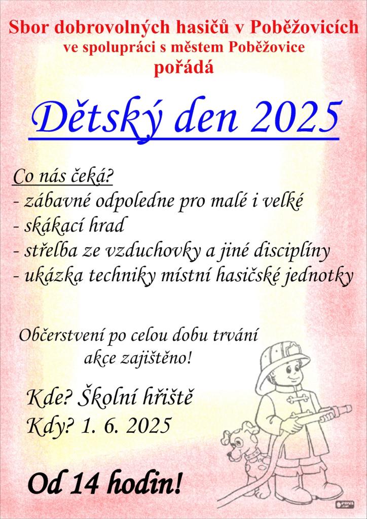 Dětský den se uskuteční 1.6.2025 na Školním hřišti v Poběžovicích od 14:00 hodin.