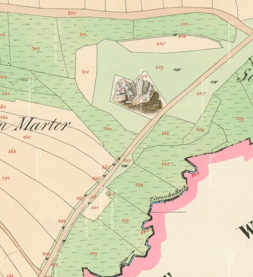 Na české straně je jen velmi málo výchozů, které by byly zachované, dobře přístupné a které by dostatečně odkrývaly vlastní charakter křemenného valu. Zelenavá barva tohoto výchozu, způsobená zřejmě jemně rozptýleným pyritovým pigmentem, je zcela ojedinělá.